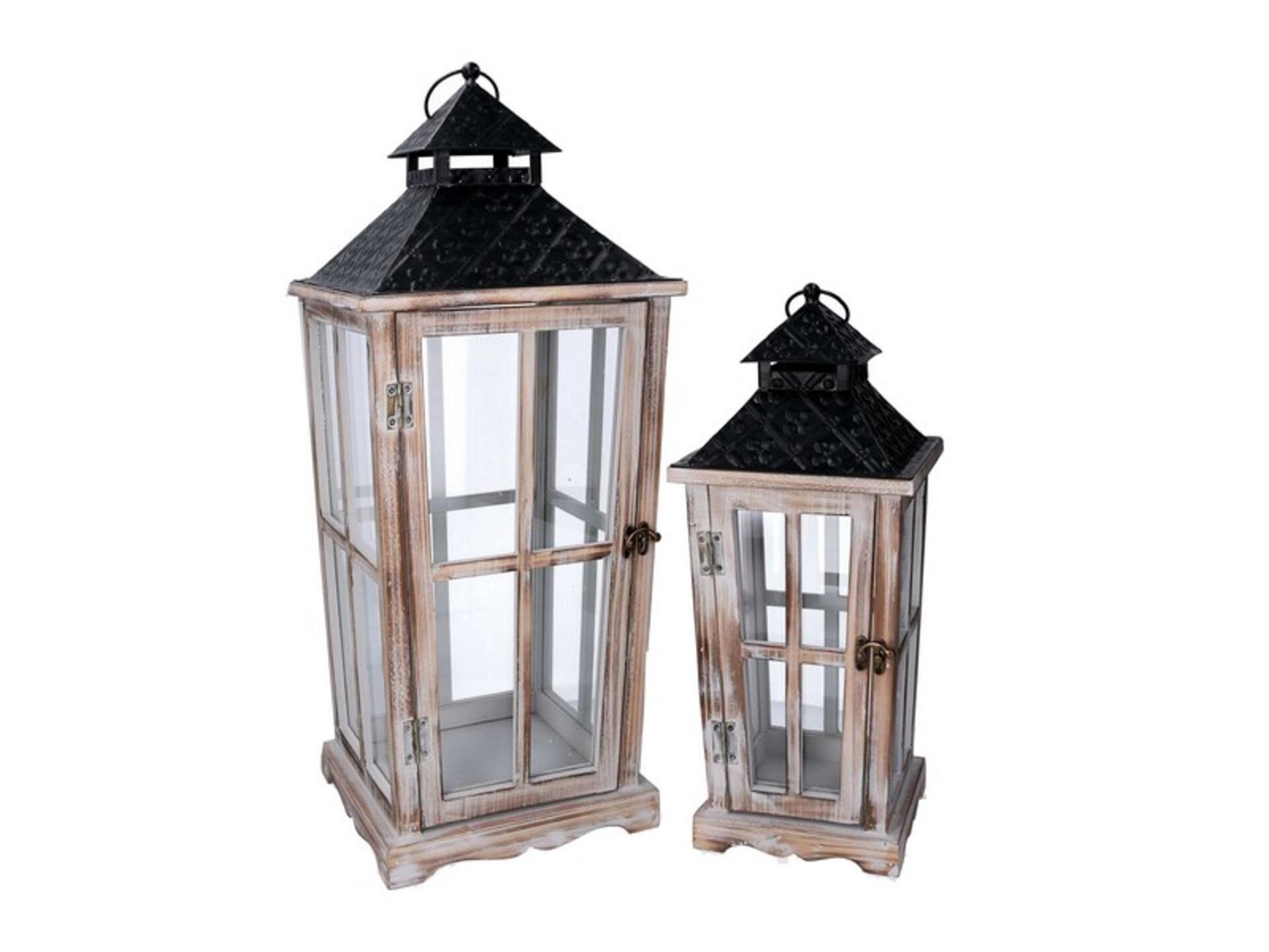 SET 2 LANTERNE LEGNO SBIANCATO RETT